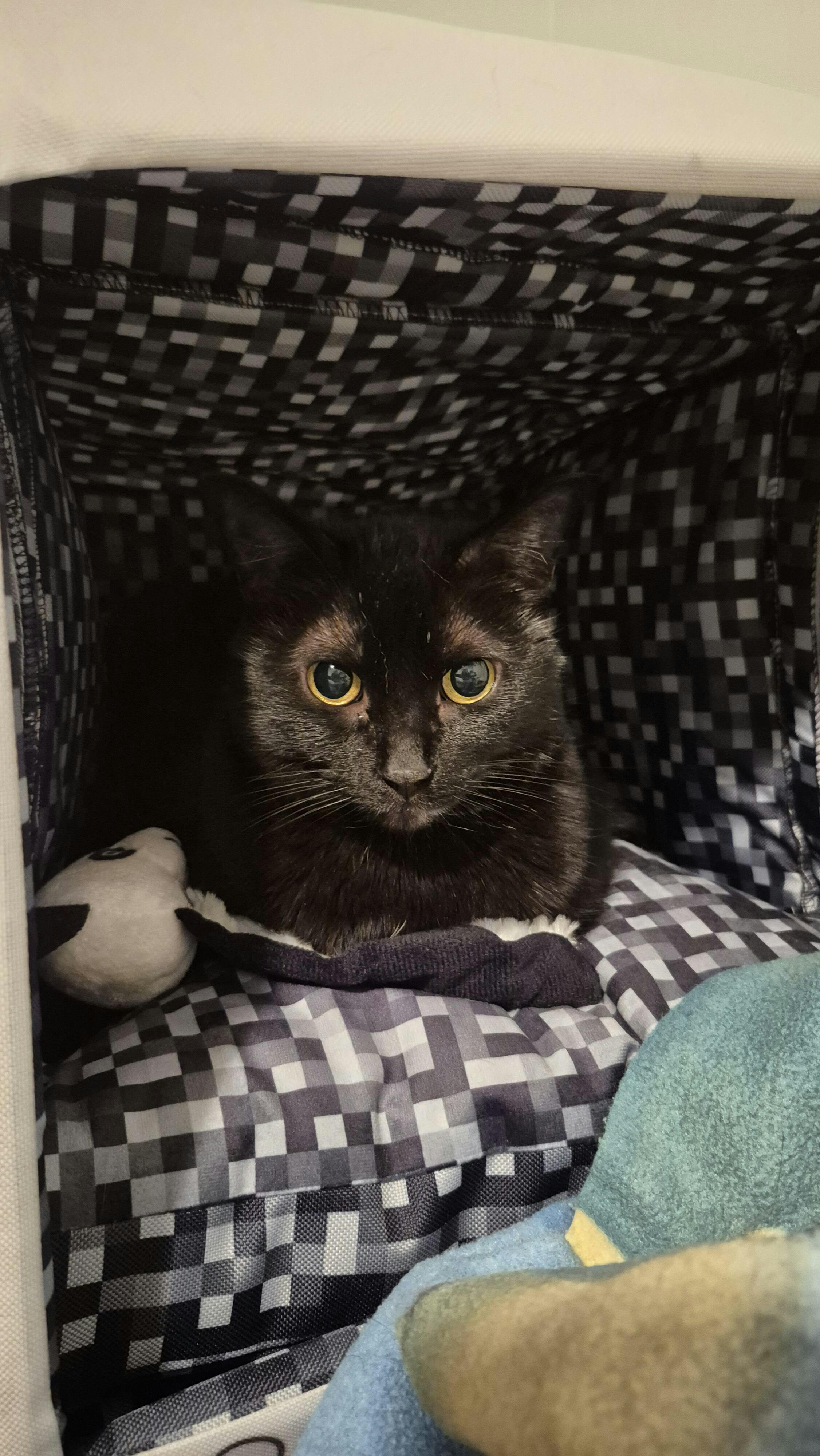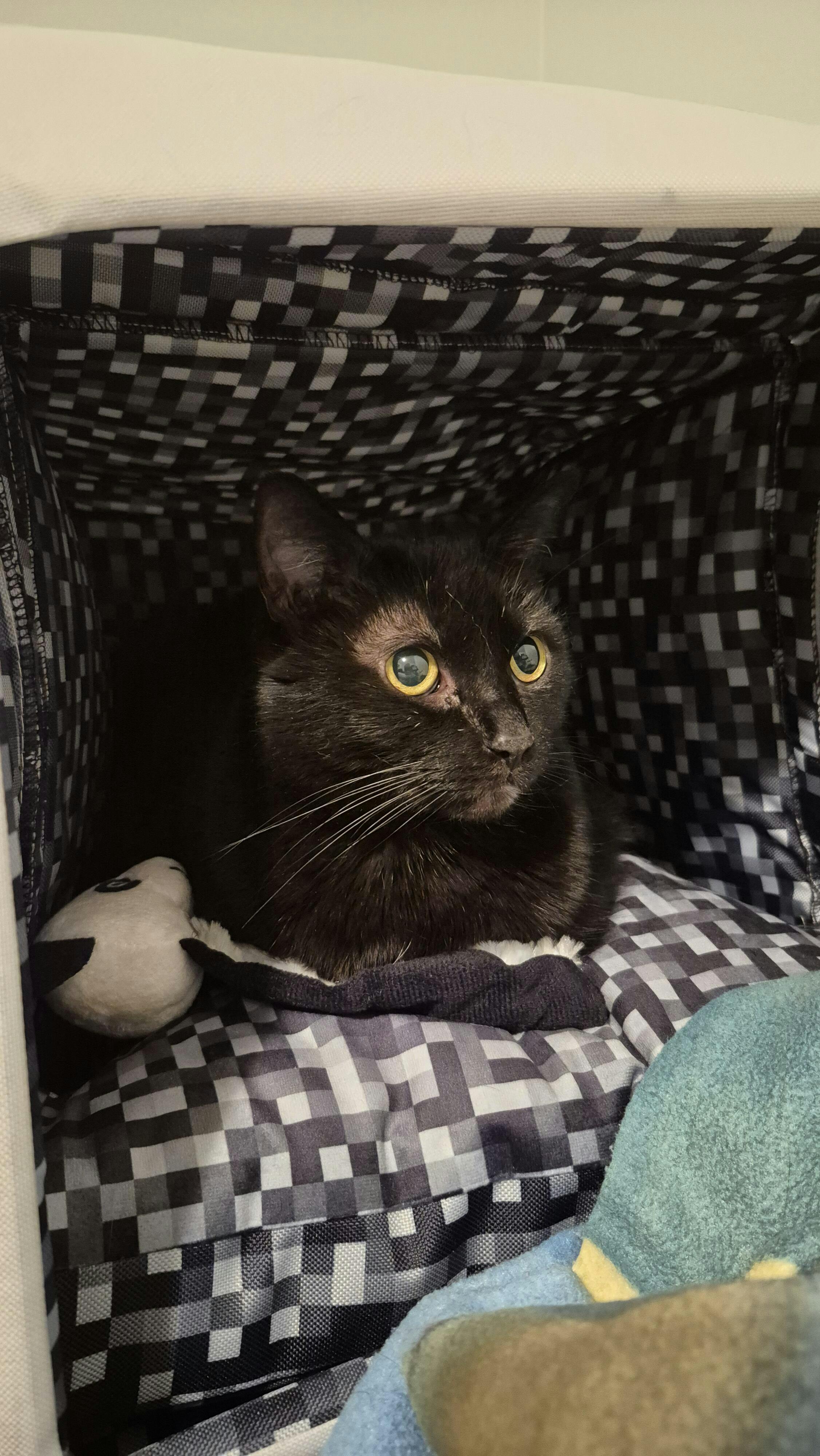 It looks great, however the pillow part of it is to springy and shadow didn’t like the pillow as it meant she hit her head on the roof. So I took that out and now she loves it. She also hides in it (black cat blends in to the inside)